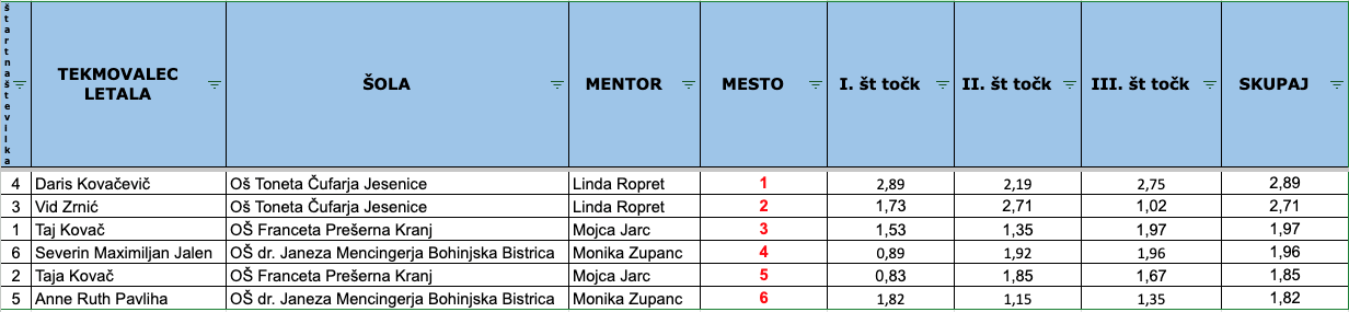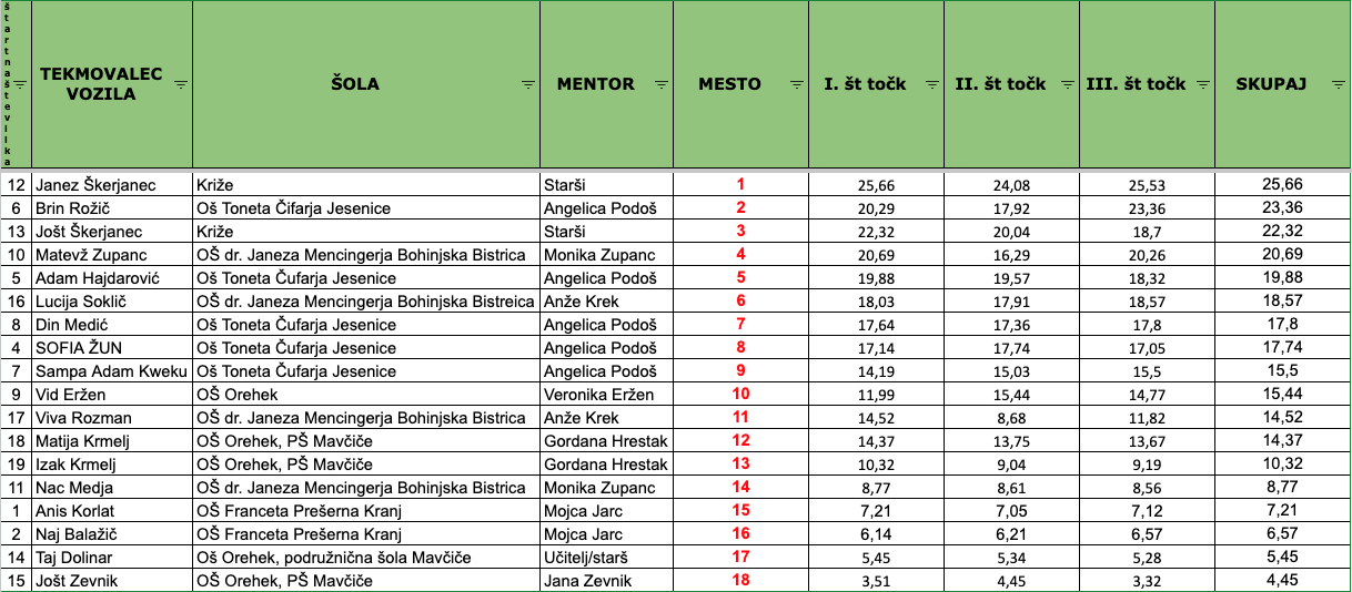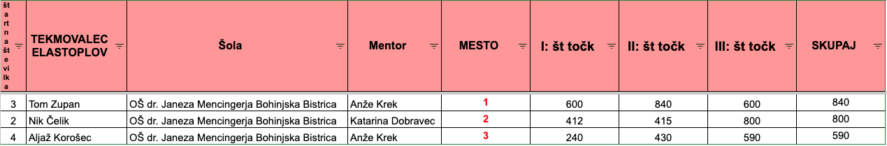 Rezultati: Elastoplovi, Avtomobili, Letala